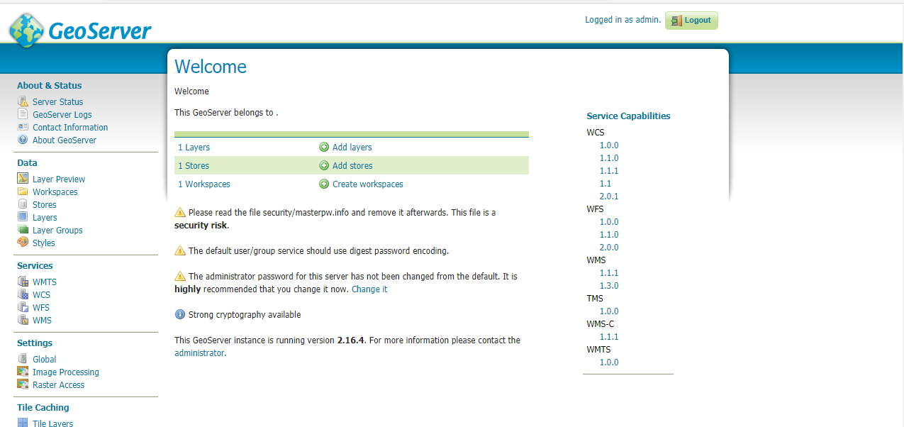 登录GeoServer的Web管理页面